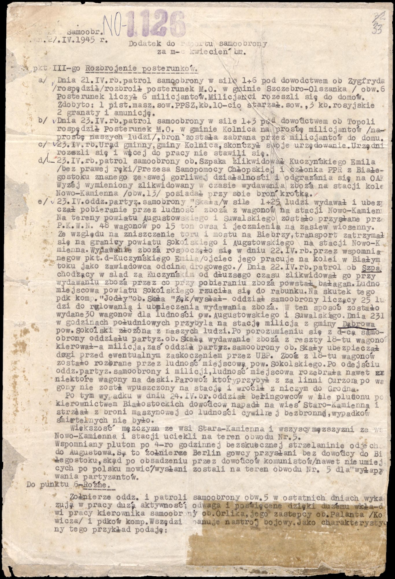 Stąd m.in. decyzja gen. bryg. Leopolda Okulickiego „Niedźwiadka” z 19 stycznia 1945 r. o rozwiązaniu AK. Jednak jej struktury przetrwały na terenie podlegającym Okręgowi Białostockiemu AK dzięki jego komendantowi płk. Władysławowi Liniarskiemu „Mścisławowi”, który w lutym 1945 r. powołał Armię Krajową Obywatelską i wskazał jej nowego przeciwnika – sowieckiego okupanta i posłusznych mu polskich kolaborantów. Działalność pod nową nazwą wznowił Inspektorat Suwalski AKO, w skład którego wchodziły Obwód Augustowski i Obwód Suwalski AKO. W inspektoracie służyło ok. 2000 żołnierzy. Wspierała ich siatka osób cywilnych, mieszkańców tych ziem. Ich rola polegała zwykle na udzieleniu schronienia, zaopatrzeniu w żywność czy na wymianie informacji.