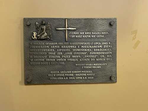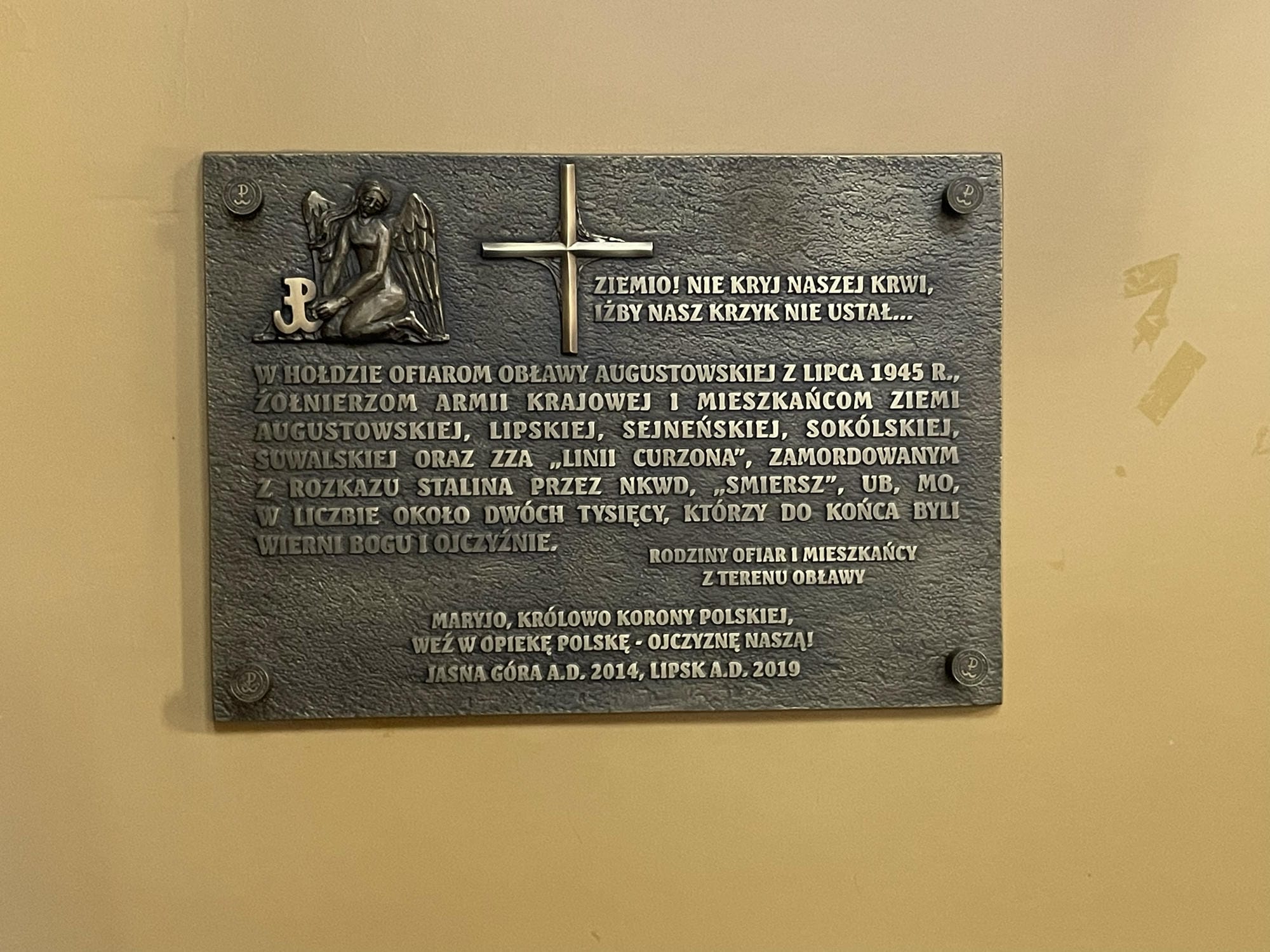 W lipcu 2019 r. w kościele parafialnym pw. Matki Bożej Anielskiej w Lipsku poświęcono tablicę upamiętniającą ofiary Obławy Augustowskiej, będącą kopią tablicy zawieszonej w 2014 r. na Jasnej Górze. Historię tablicy częstochowskiej przywołano już przy okazji opisu jej kopii zawieszonej w 2016 r. Augustowie (punkt 4. na liście).
